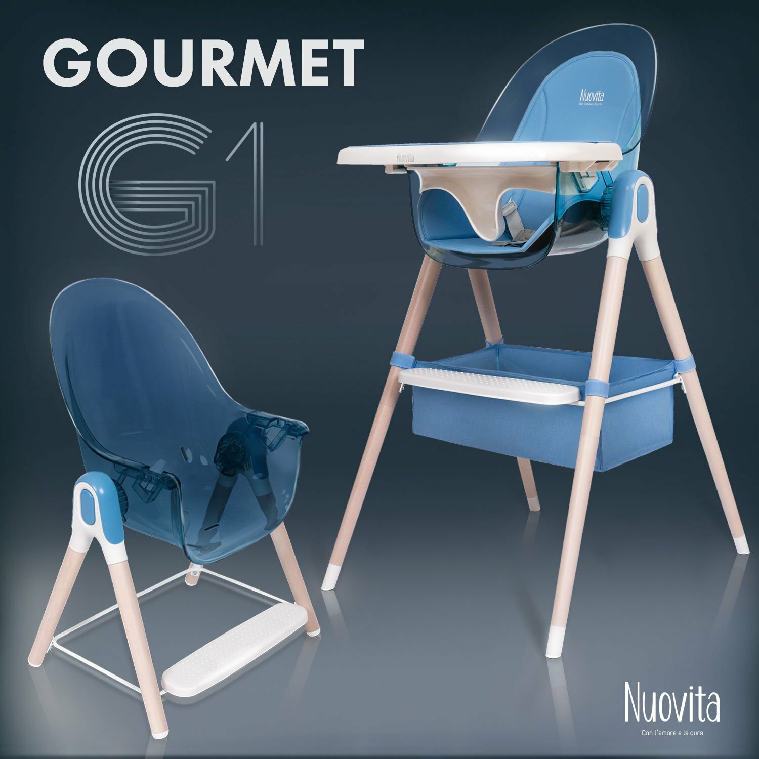 Стульчик для кормления 2 в 1 Nuovita Gourmet G1 Standart (Blu/Голубой) информация: