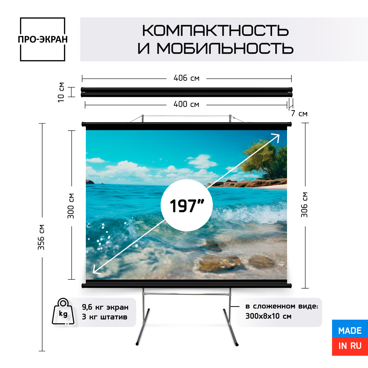 Экран для проектора про-экран на треноге 400 на 300 см (4:3), 197 информация: