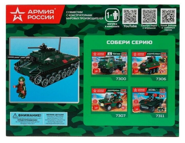 Конструктор танк серия армия россии 219 деталей город мастеров 7386-UU информация: