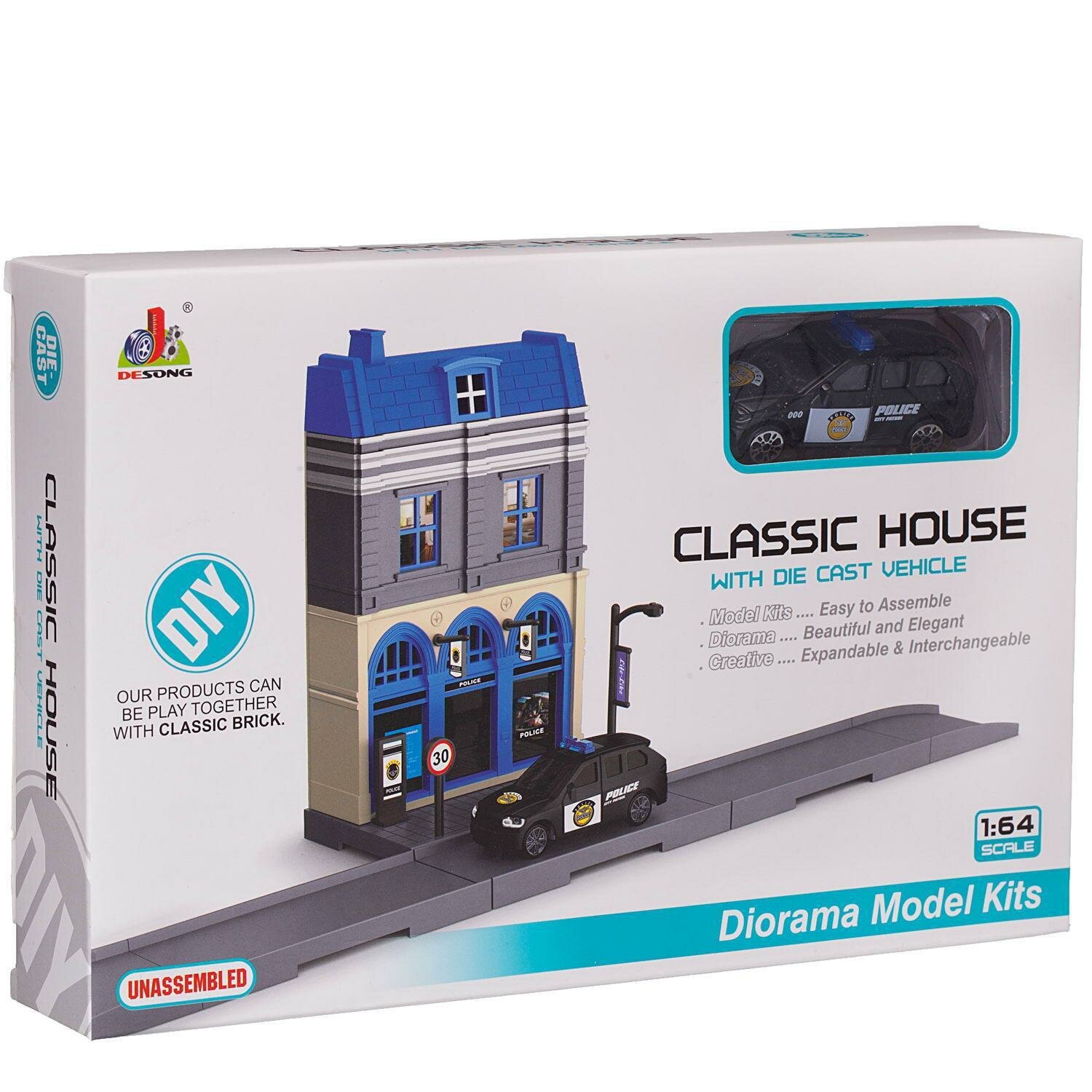 Конструктор JUNFA Городская улица "Полиция" с металлической машинкой 1:64 информация:
