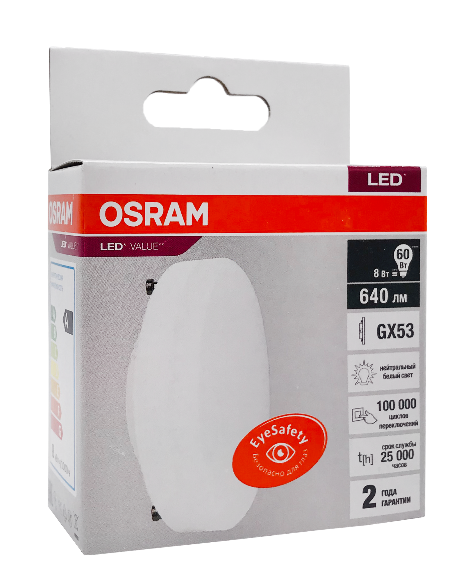 Лампочка светодиодная GX53 8W 230V 840 нейтральный белый свет OSRAM LV информация: