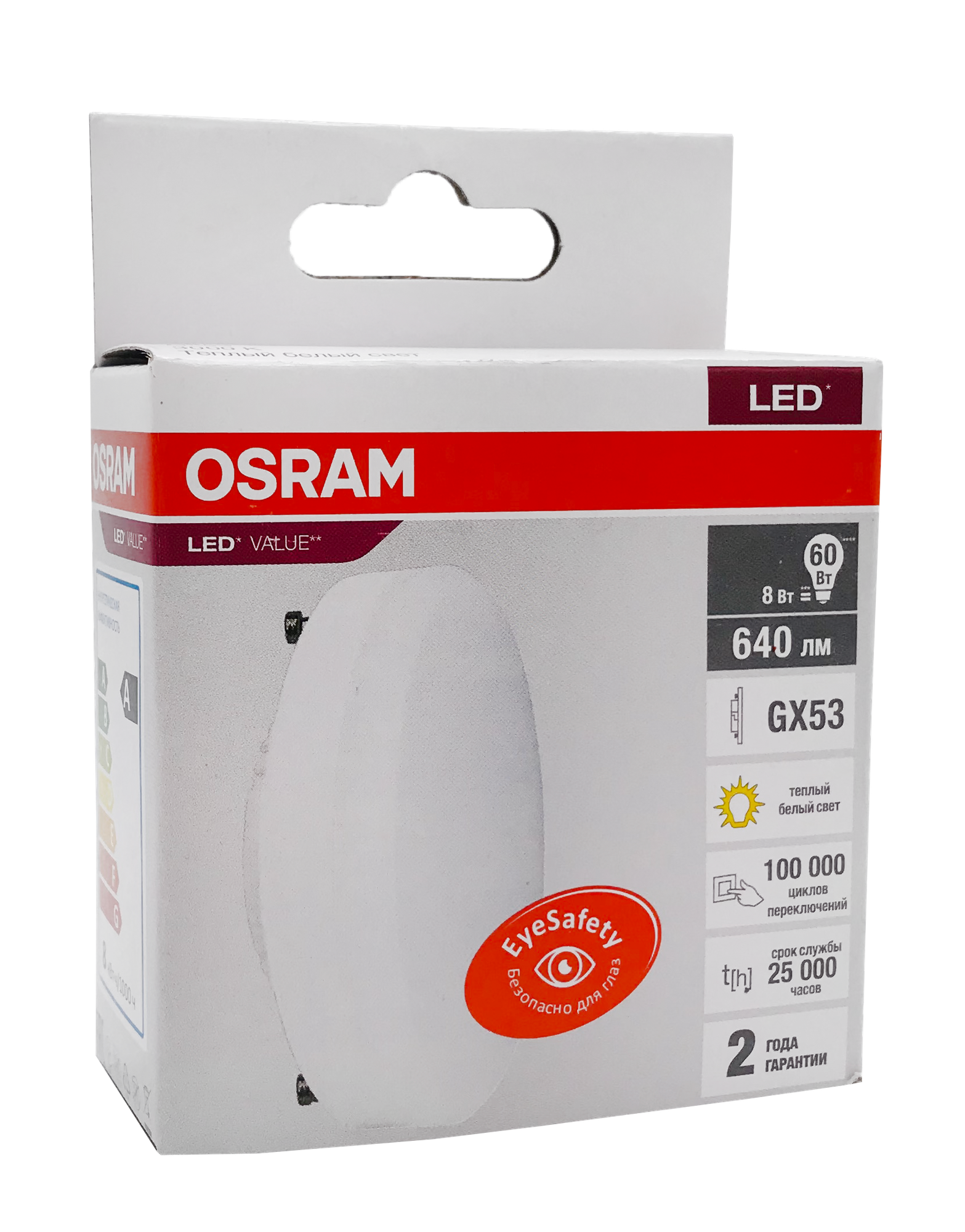 Лампочка светодиодная GX53 8W 230V 830 теплый белый свет OSRAM LV информация:
