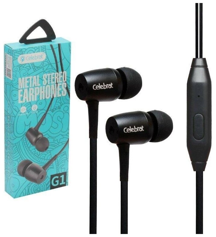 Гарнитура Celebrat G1 вставная металлическая (черная) информация: