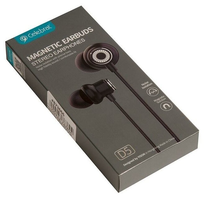 Наушники (Headphones) Celebrat внутриканальные, микрофон, кнопка ответа, кабель 1.2м, черный, D5 информация: