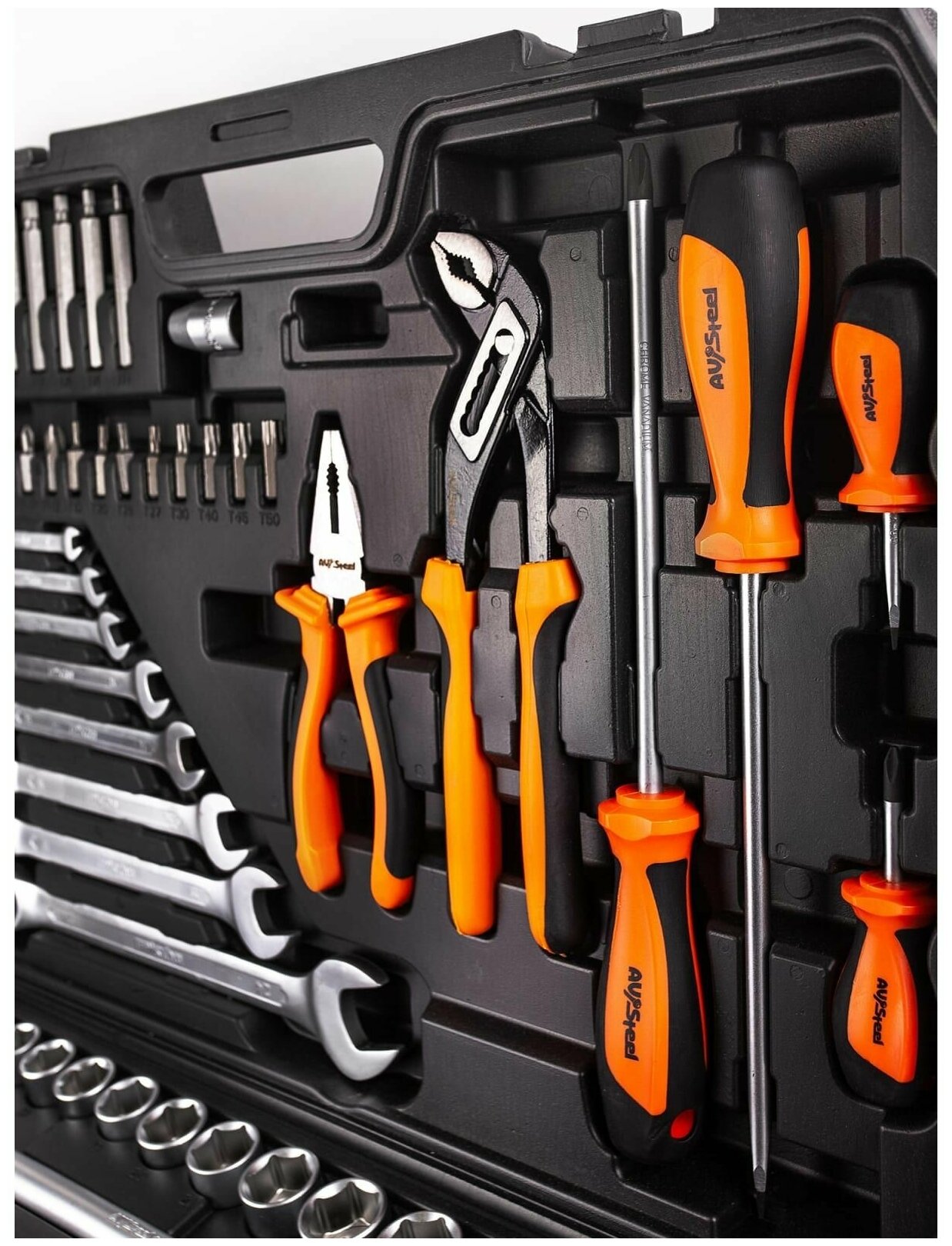 Набор инструментов AVSteel AV-011118, 118 предм., черный/оранжевый