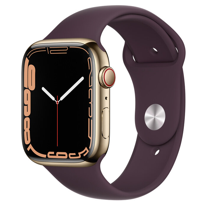 Отзывы на Умные часы Apple Watch Series 7 GPS + Cellular MKJX3FD/A 45мм Gold Stainless Steel Case with Dark Cherry Sport Band, золото/вишня