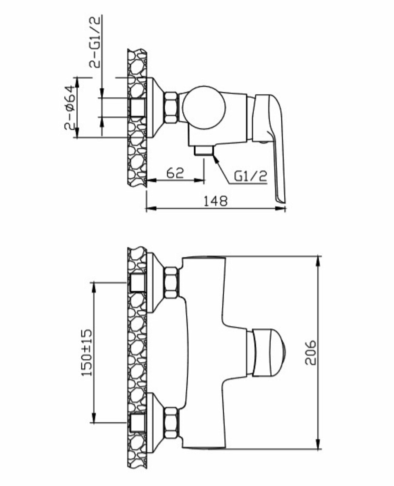Смеситель для душа без излива однорычажный Orange M54-200gr цвет графит