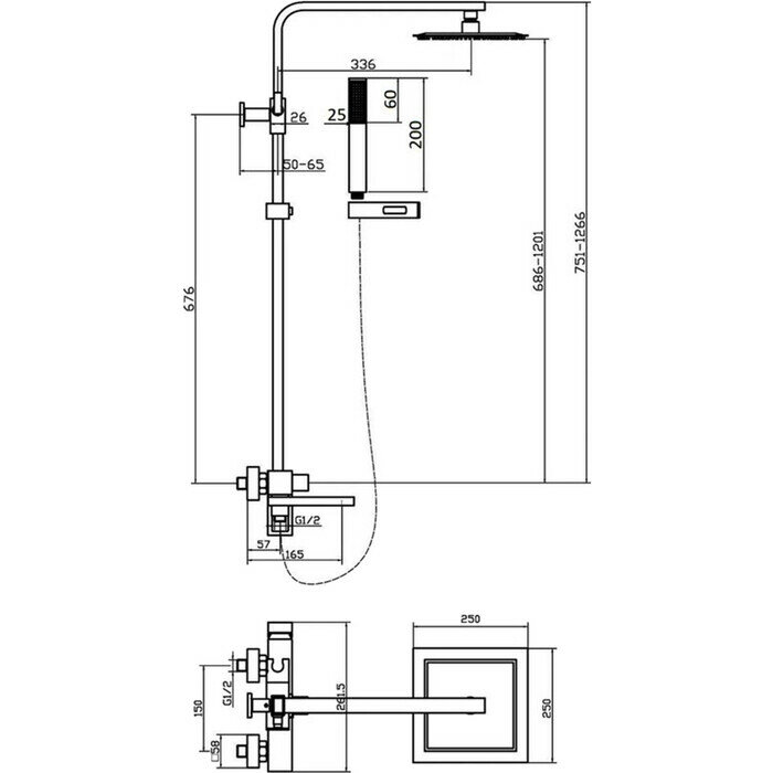 | Форма верхнего душа | квадратная |