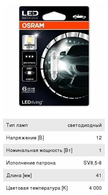 Лампа светодиодная с5w 41mm premium warm white 4000k (блистер 1шт.) информация: