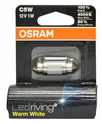 Отзывы на Лампа автомобильная Osram C5W (SV8.5/8) 35 мм LED Premium Warm White 4000K 12V, 6498WW01B