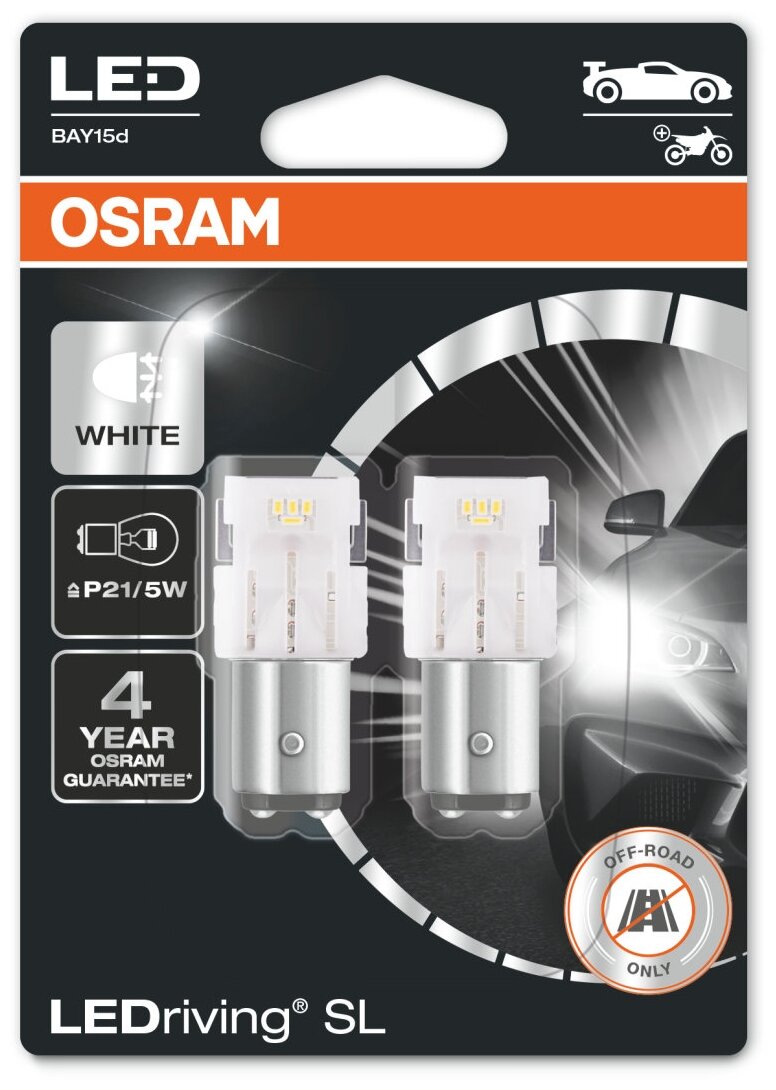 Ledriving sl (3поколение) 2,0w/12v p21/5w bay15d bli2 белый 6000k 2шт, osram, 7528dwp02b информация: