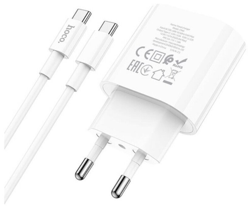 Сетевое зарядное устройство hoco C94A Type-С /Type-C, быстрая зарядка PD20W / белое информация:
