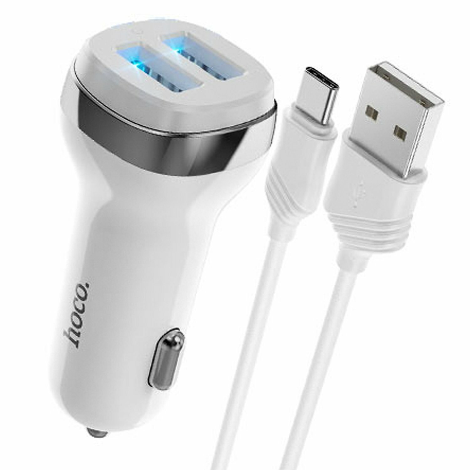 Автомобильное зарядное устройство, 2 USB 2.4A (Z40), usb cable Type-C, HOCO, белый
