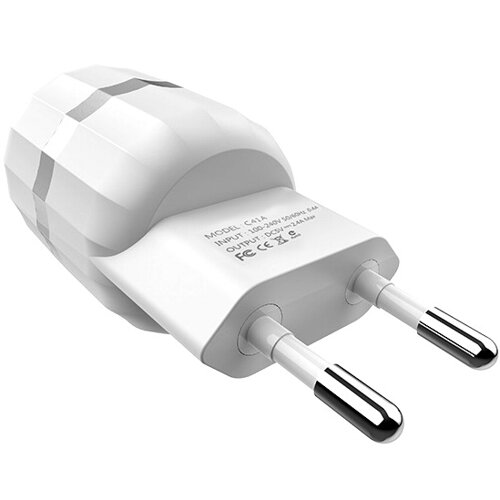 Блок питания сетевой 2 USB HOCO, C41A, Wisdom, 2400mAh, пластик, кабель микро USB, цвет белый