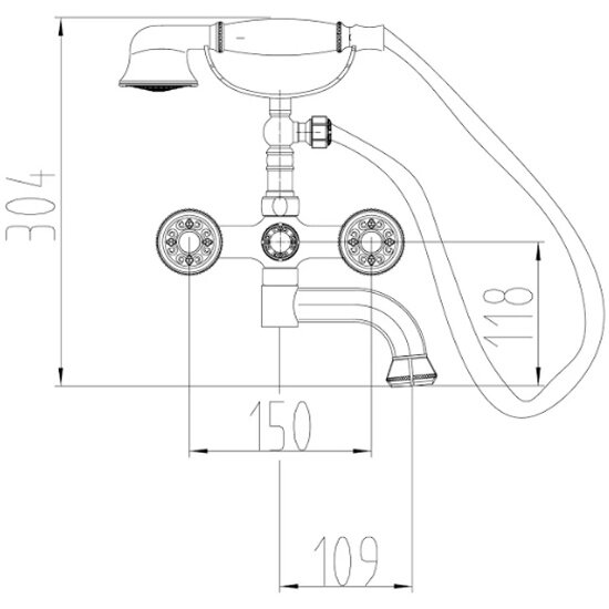 Смеситель для ванны Orange ALFI двухвентильный с душевым набором, глянцевый хром