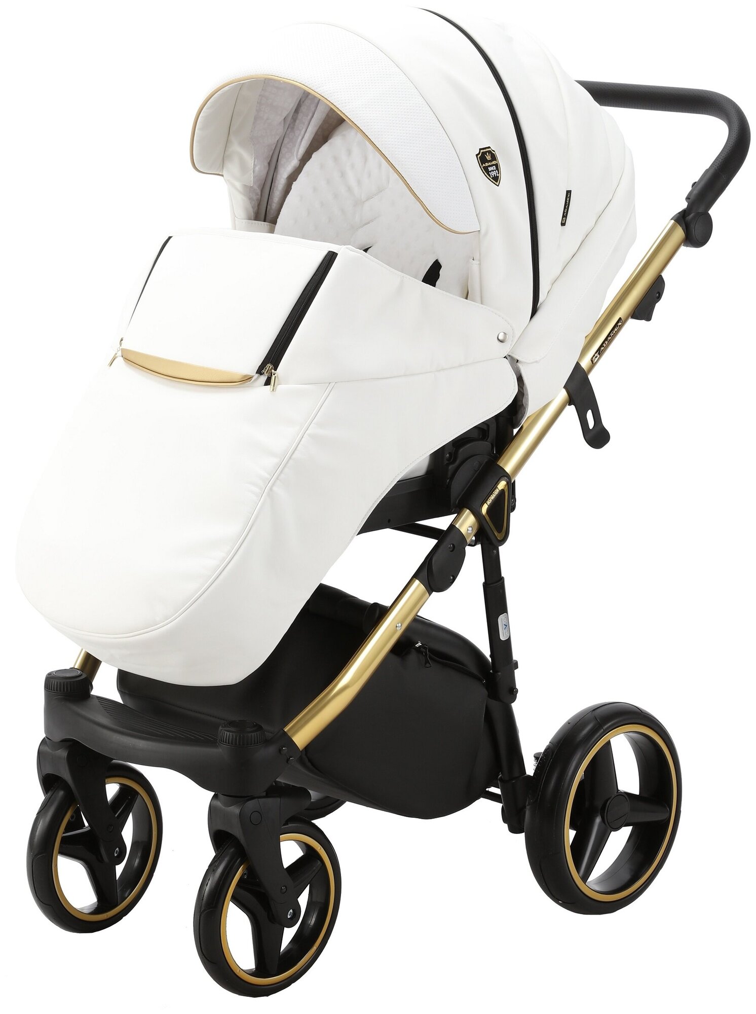 Коляска универсальная Adamex Cortina Special Edition Deluxe 3 в 1, CT300 - Белая эко-кожа, золотая рама информация: