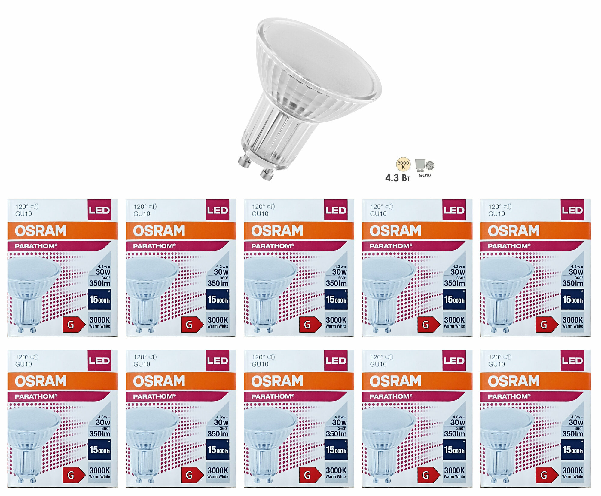 Мы выбрали 10 лучших цен на Лампочка светодиодная Osram Софит PAR16 GU10 4,3Вт 220В 350Лм 3000К Теплый белый, упаковка 10шт. Перед тем как купить Лампочка светодиодная Osram Софит PAR16 GU10 4,3Вт 220В 350Лм 3000К Теплый белый, упаковка 10шт посмотрите найденные предложения из Яндекс Маркета и других сайтов на основе XML фидов.