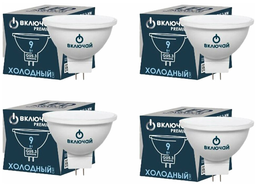 10 цен на Лампочка светодиодная 4 шт 9W GU5.3 MR16 6500K 220V(LED PREMIUM MR16-9W-GU5.3-WW) Включай