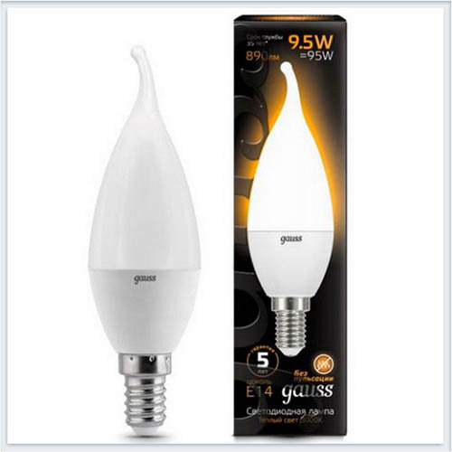 Лампа светодиодная gauss 104101110, E14, CA37, 9.5 Вт, 3000 К