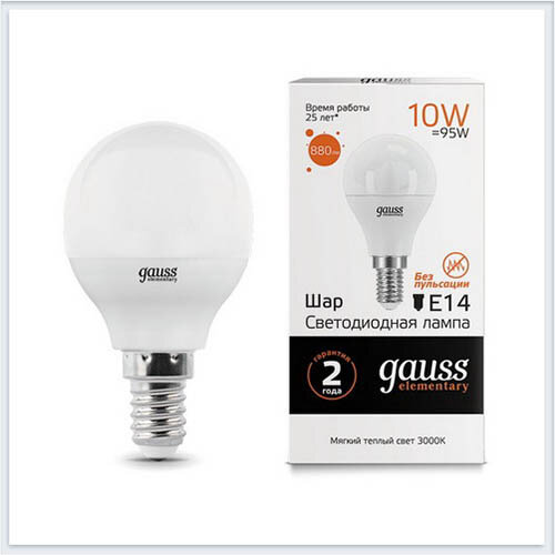 Отзывы на Gauss Лампа светодиодная шар 10W E14 3000K Gauss Elementary 53110