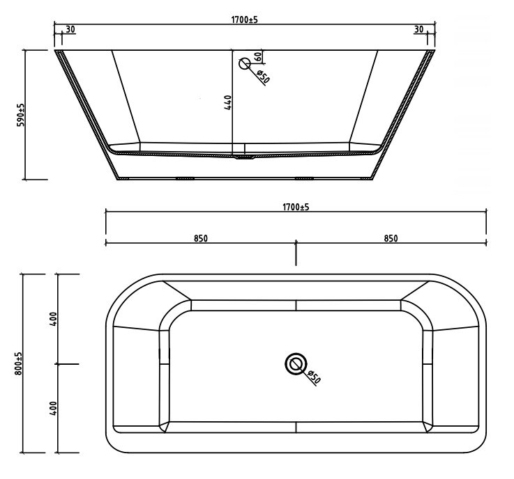 Ванна Ceruttispa COMO150 акриловая (1500x750x560) отдельностоящая, белая