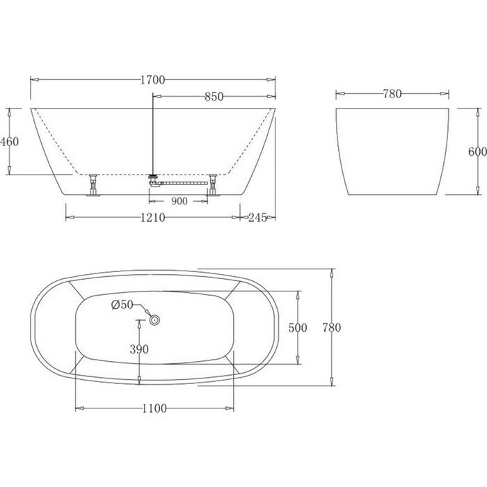 Акриловая ванна без перелива BelBagno BB72-1700-W0 1700x780x600