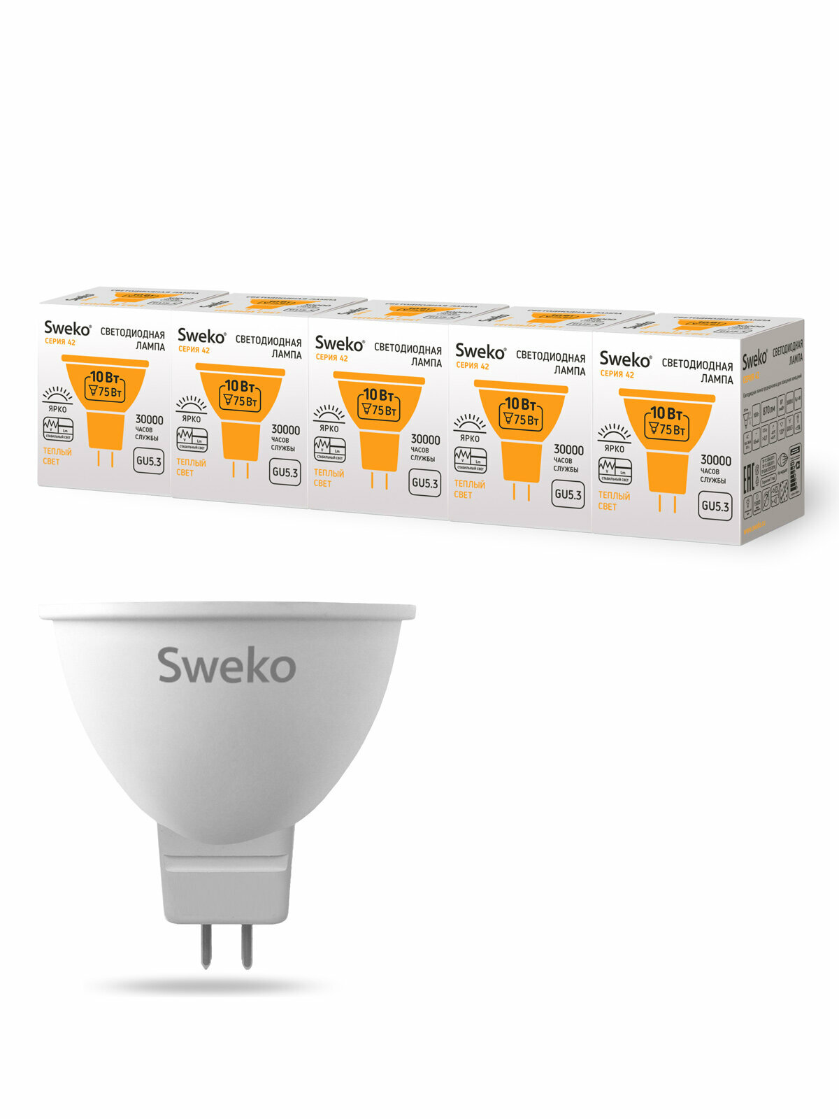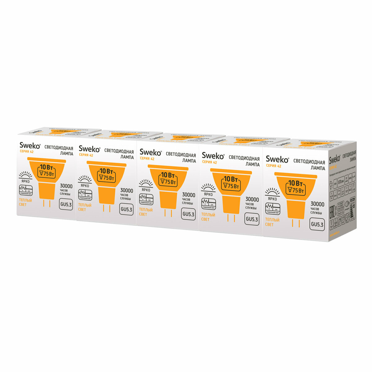 Комплект из 5 штук. Sweko Светодиодная лампа Серия 42 MR16 матов GU5.3 10W(870lm) 3000K 41х50 информация: