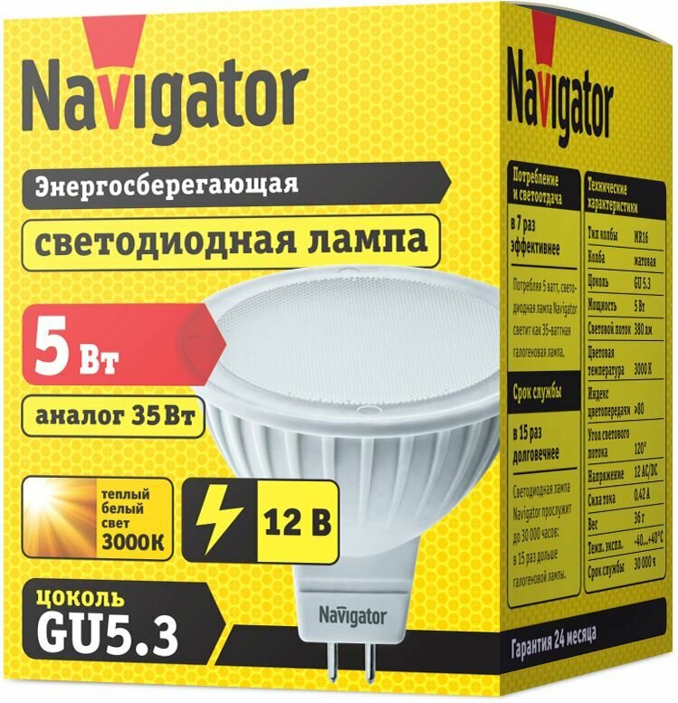 Отзывы на Лампа светодиодная 94 262 NLL-MR16-5-12-3K-GU5.3 5Вт 3000К тепл. бел. GU5.3 360лм 12В Navigator 94262