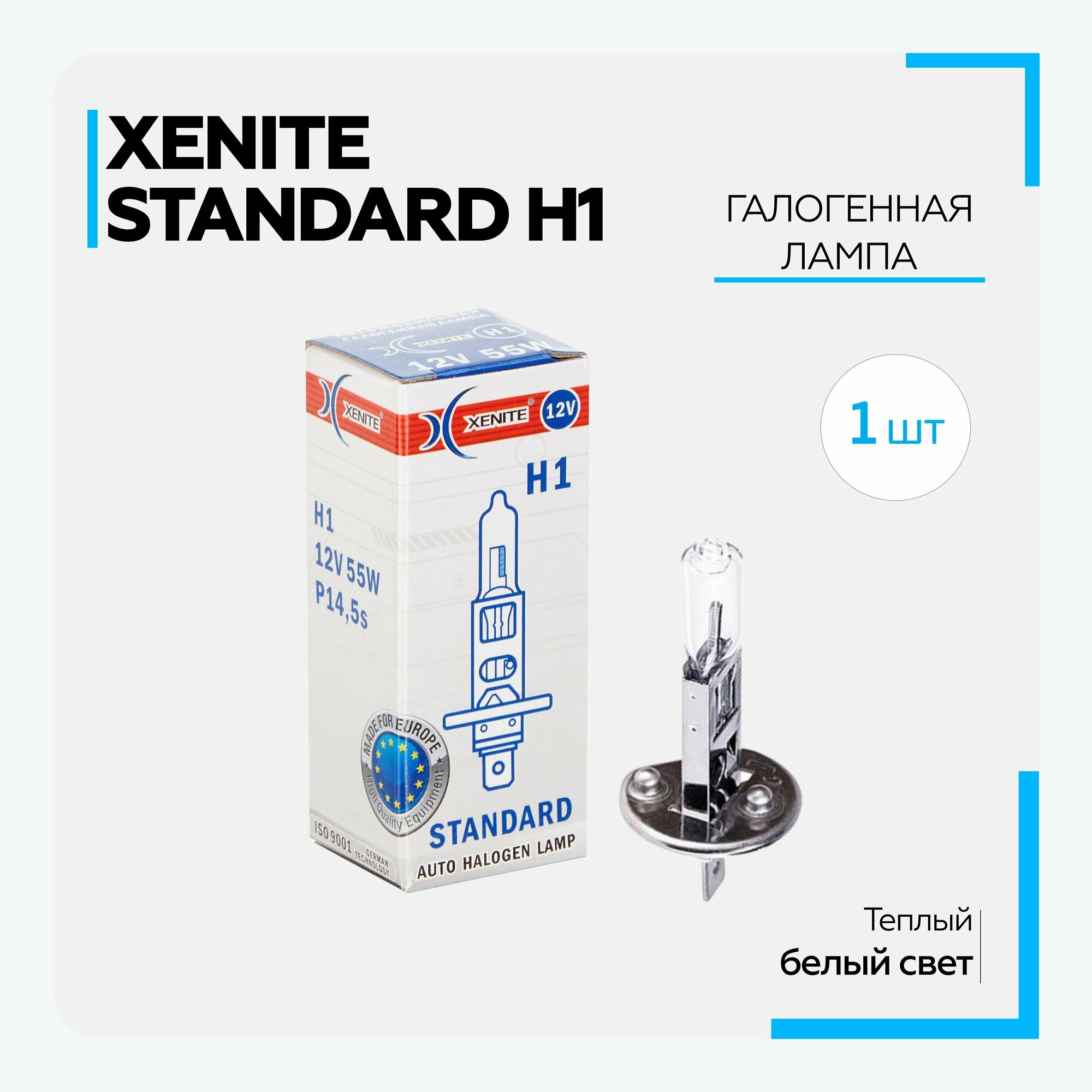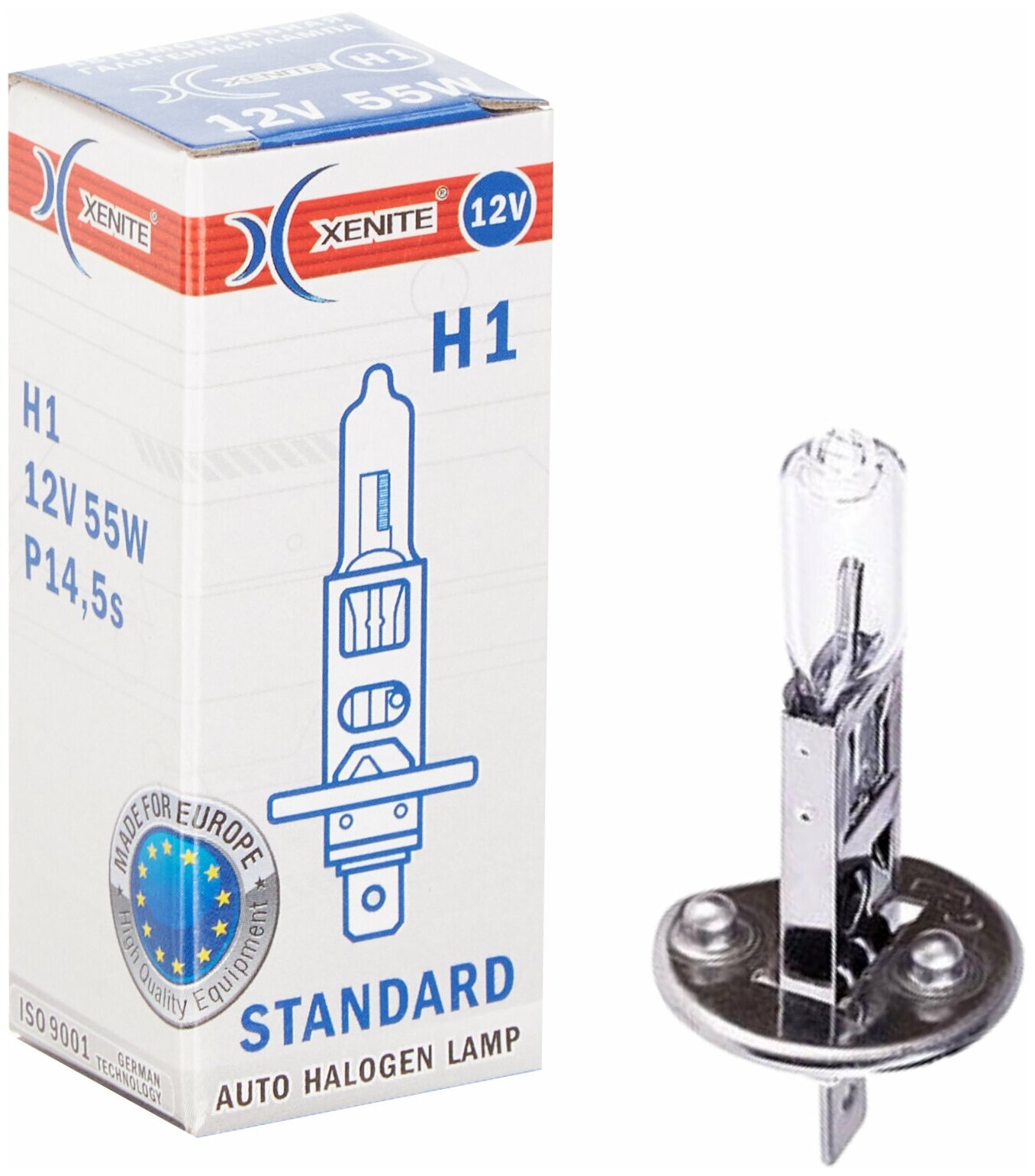 Лампа автомобильная галогенная Xenite - H1 STANDARD (Цоколь P14,5s) 12V (1 шт.) информация: