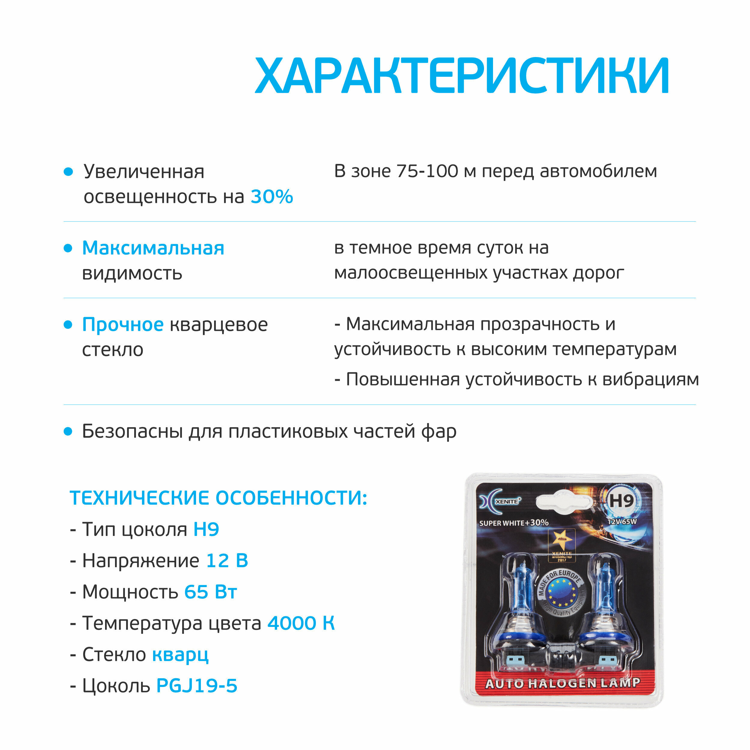 Лампа автомобильная галогенная XENITE H9 (SUPER WHITE +30%) (PGJ19-5) 12V (1 шт.) информация: