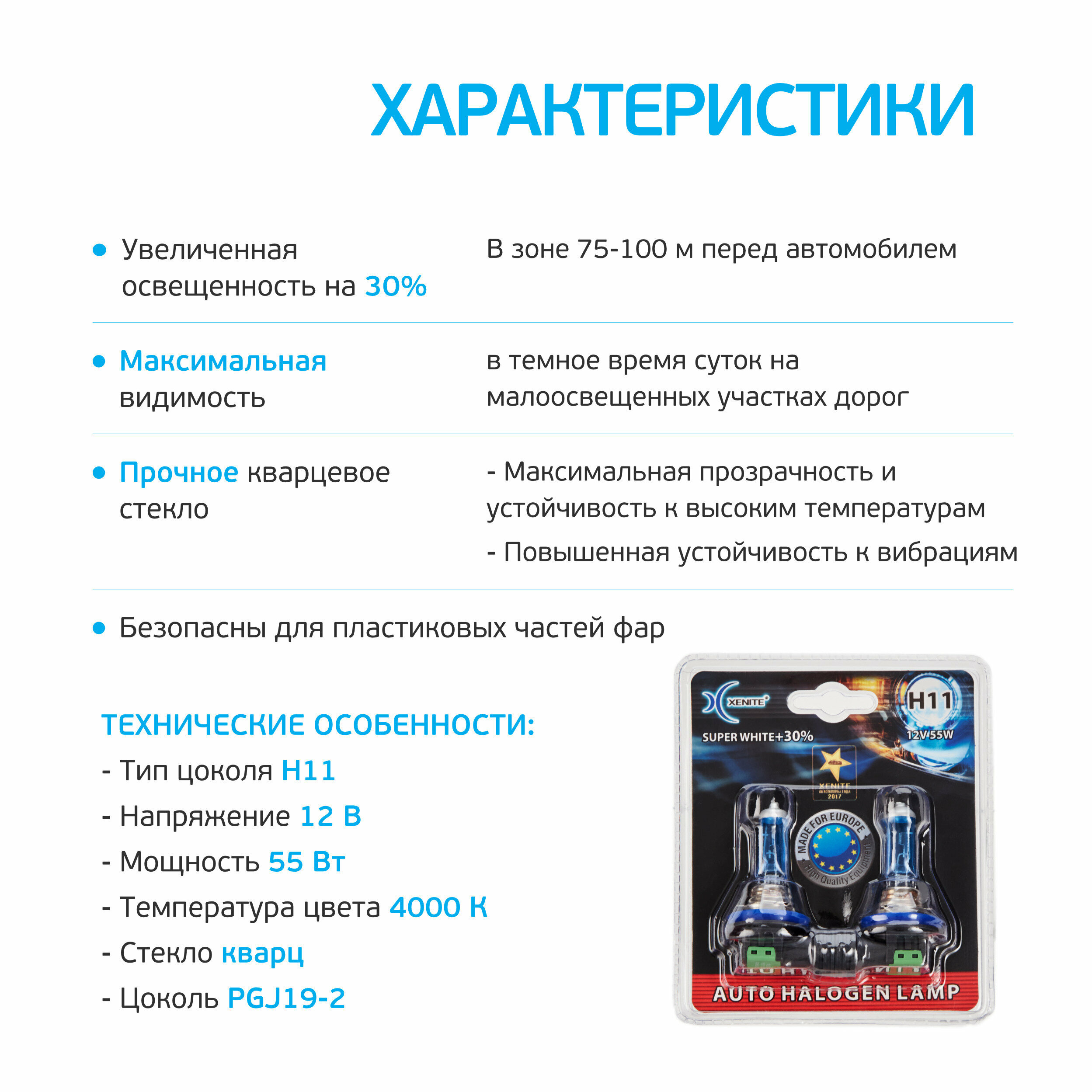 10 цен на Лампа автомобильная галогенная XENITE H11 (SUPER WHITE +30%) (PGJ19-2) 12V (1 шт.)