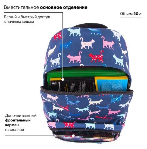 BRAUBERG Рюкзак BRAUBERG, универсальный, сити-формат, "Коты", 20 литров, 41х32х14 см, 228856 информация: