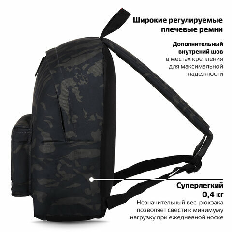 Рюкзак BRAUBERG, комплект 3 шт., универсальный, сити-формат, серый, Камуфляж, 20 литров, 41х32х14 см, 225367 информация: