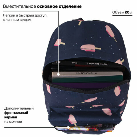 Рюкзак BRAUBERG, комплект 5 шт., универсальный, сити-формат, Мороженое, 20 литров, 41х32х14 см, 228858 информация: