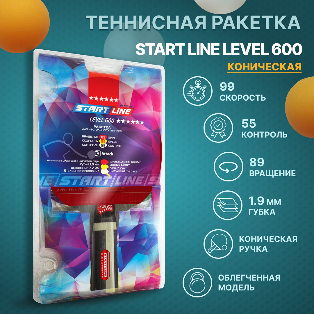 Теннисная ракетка Start line Level 600 New (коническая) 12704 информация: