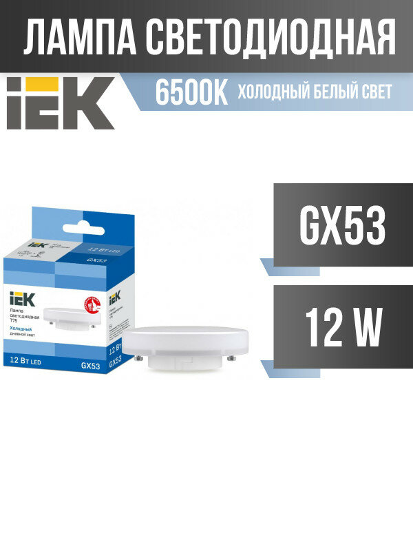 Отзывы на IEK GX53 светодиодн. 12W(1080lm) 6500К 6K 75х24 LLE-T80-12-230-65-GX53 (арт. 726517)