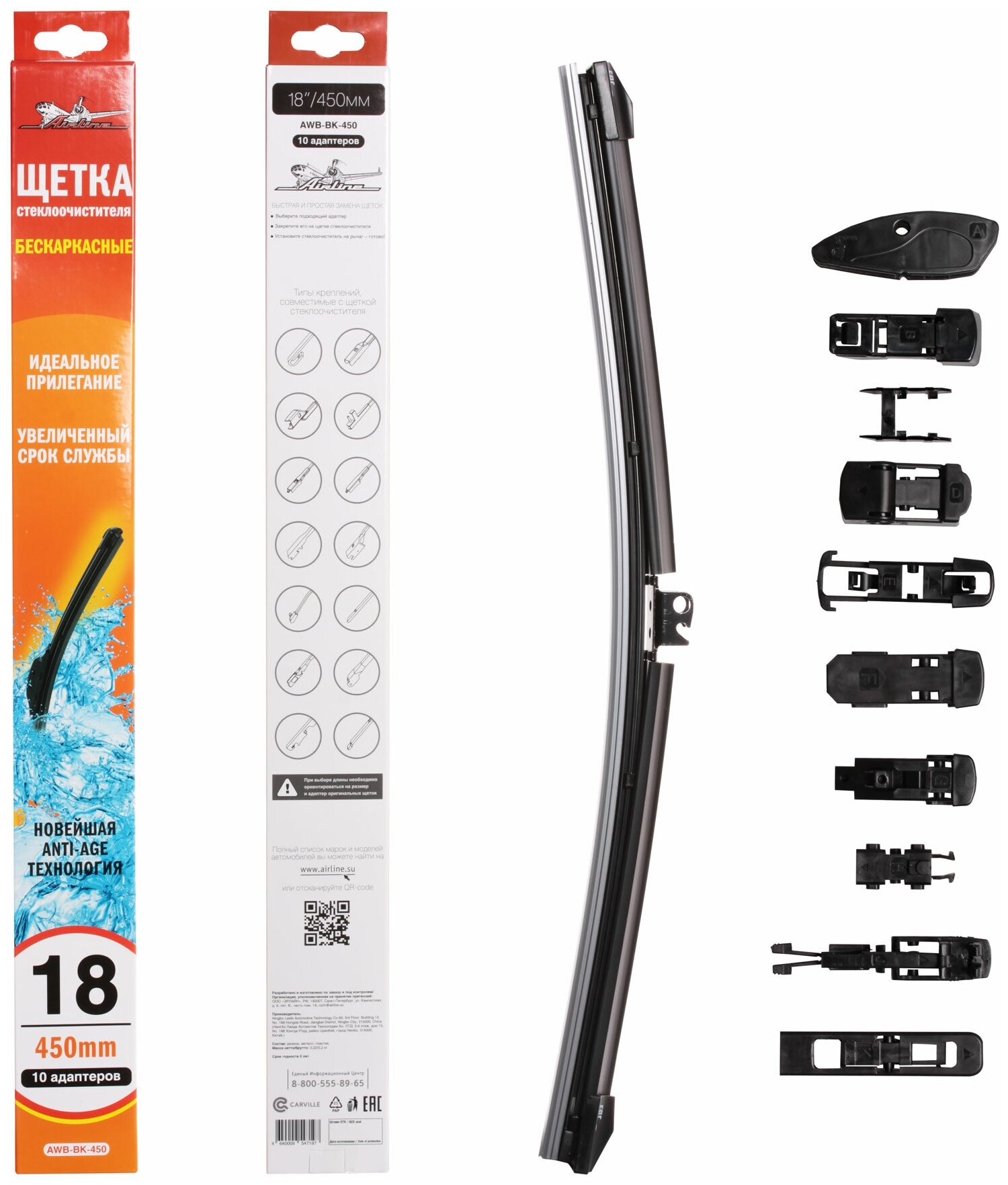 Щетка стеклоочистителя 450 мм бескаркасная, 10 адаптеров AIRLINE