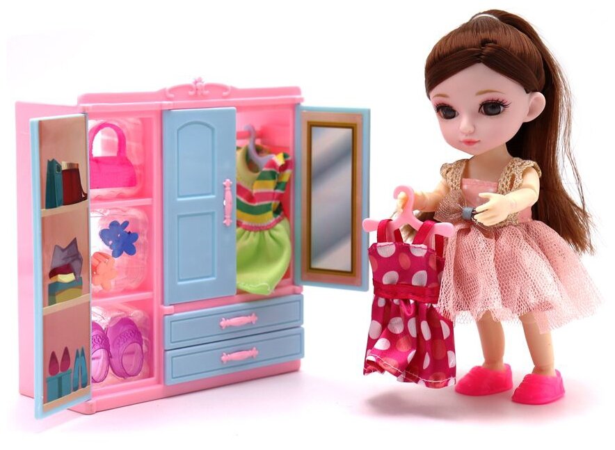 Кукла шарнирная 16 см, малышка Лили, игровой набор "Гардеробная" Funky toys