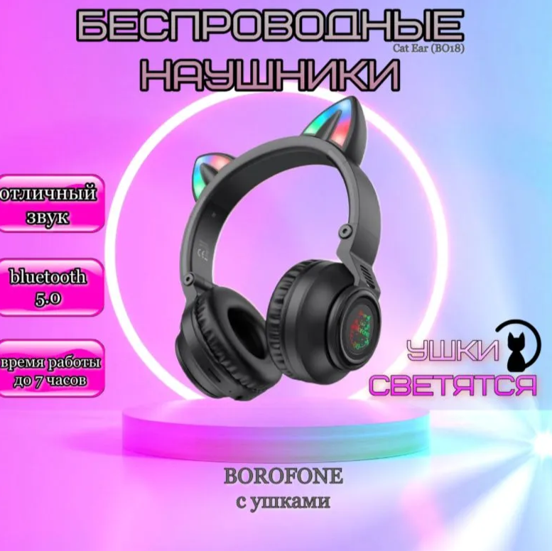 Беспроводные наушники Borofone BO18 Cat Ear, черный информация: