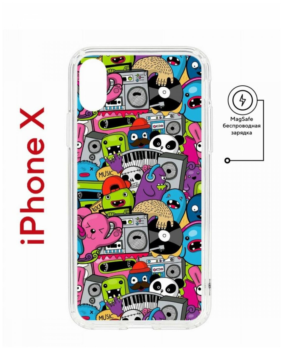 Отзывы на Чехол для iPhone X/XS Kruche Print MagSafe Monsters music,противоударный силиконовый бампер с рисунком,пластиковая накладка МагСейф с защитой камеры
