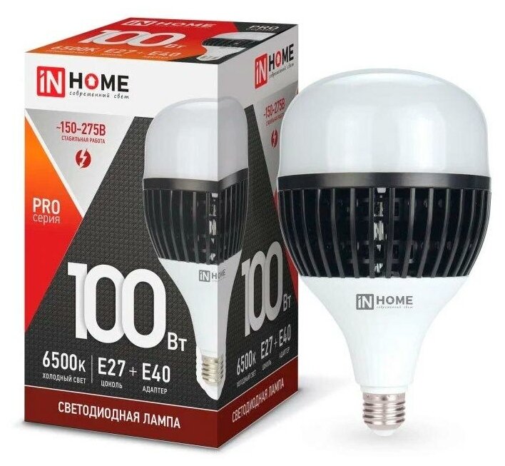 Лампа светодиодная IN HOME LED-HP-PRO с адаптером, E40/E27, HP, 150 Вт, 6500 К