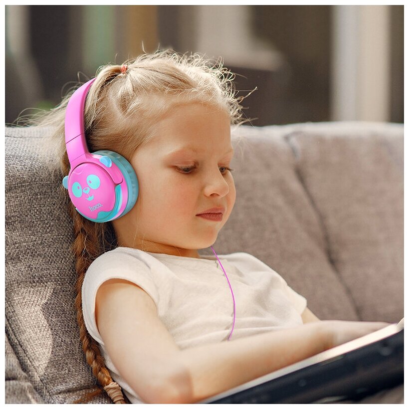 Стереонаушники полноразмерные Hoco W31 Panda детские без микрофона розовые