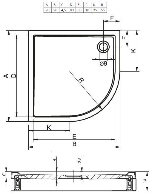 Душевой поддон радиальный Riho Davos 281 90x90 информация: