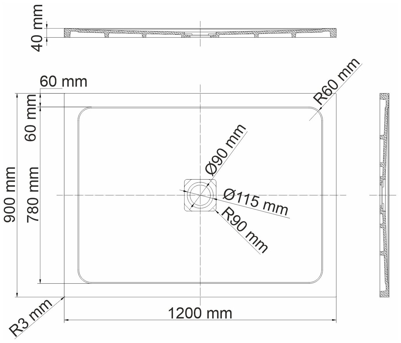 Душевой поддон WasserKRAFT Dinkel 90х120 58T07 информация: