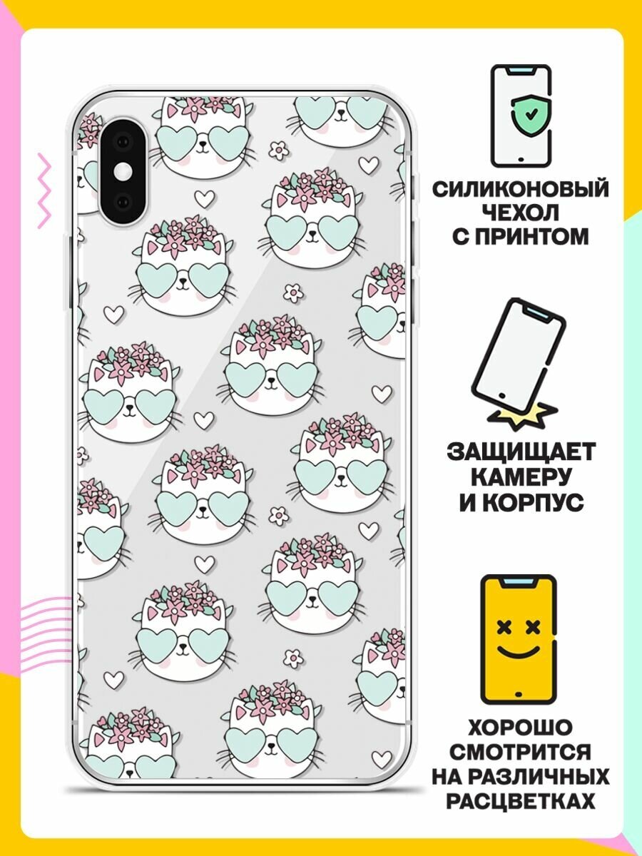 10 цен на Силиконовый чехол на Apple iPhone XS Max Коты в очках / для Эпл Айфон Икс С Макс