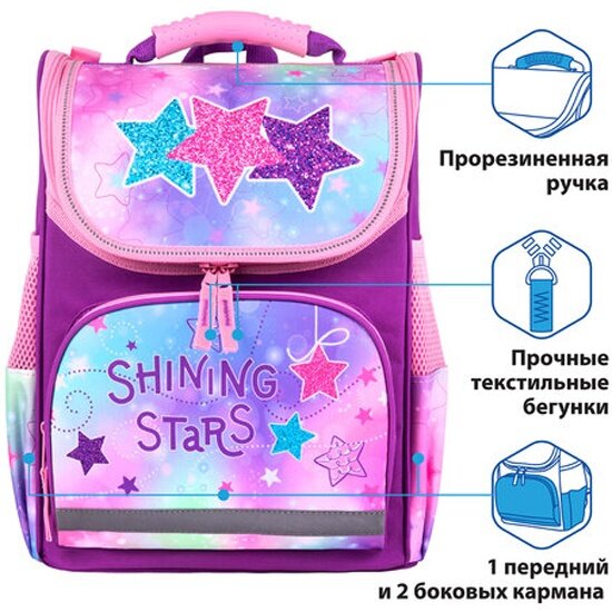 Ранец пифагор 270682 BASIC Radiant stars 1 отделение с эргономичной спинкой 35х28х18 см информация: