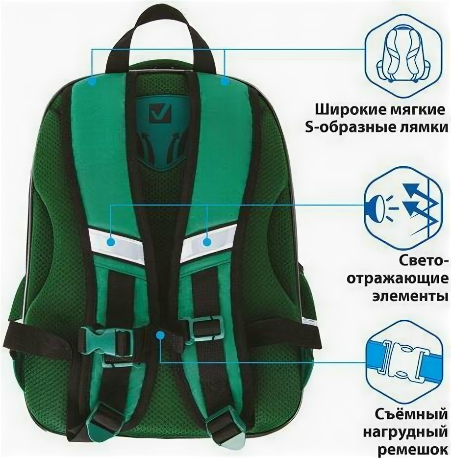 Ранец BRAUBERG Fire football 17 л зеленый информация: