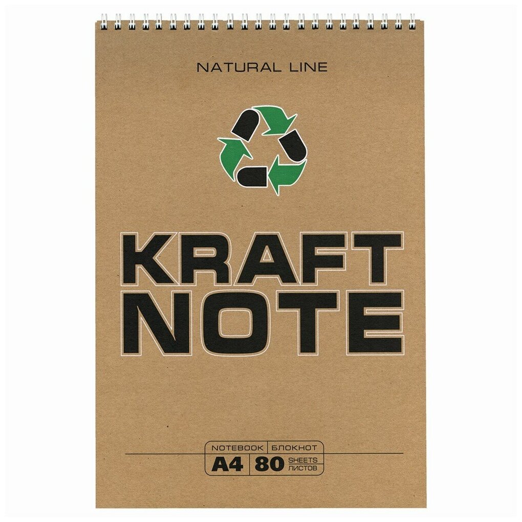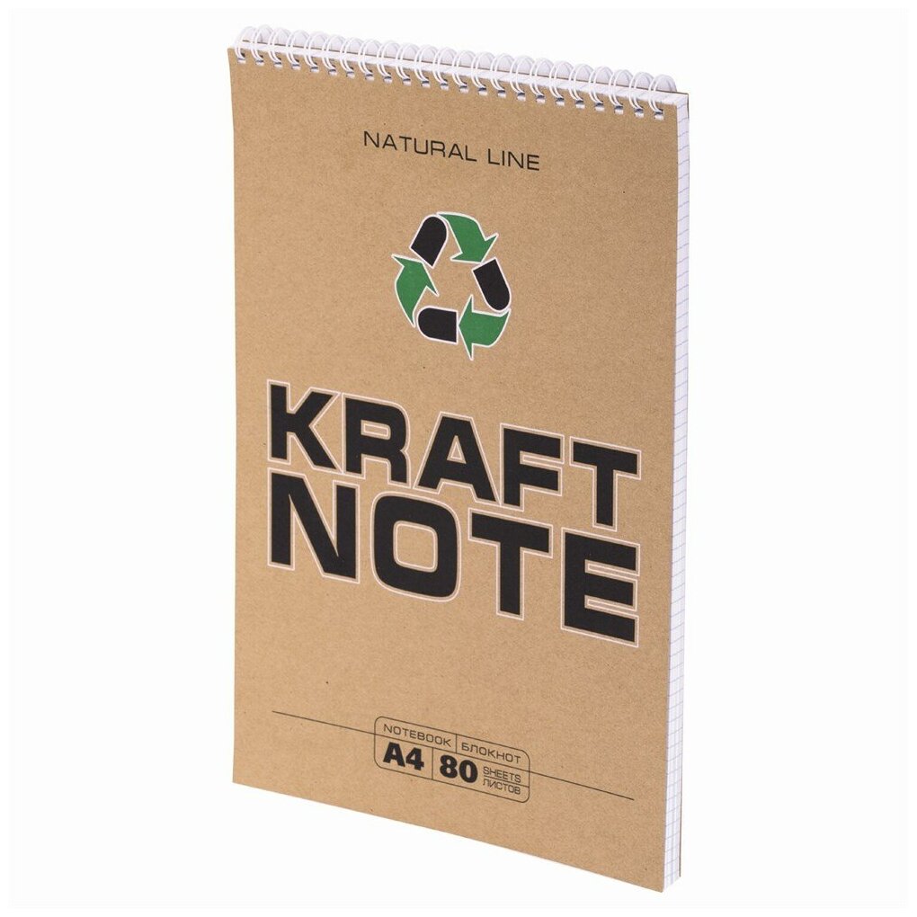 Блокнот большой формат (200х290 мм), А4, 80 л.,гребень, картон, УФ - лак, клетка, пзбм, Крафт, 0, 2 шт. информация:
