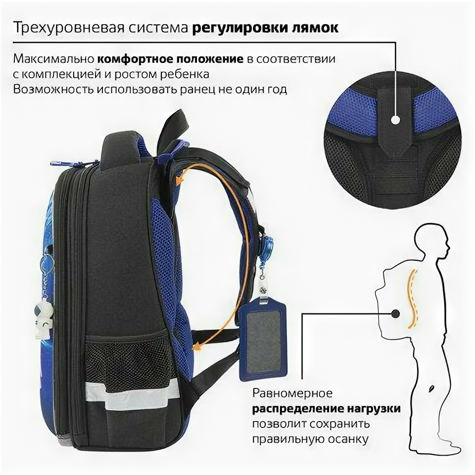 Ранец BRAUBERG PREMIUM, 2 отделения, с брелком, Spaceship, 38х29х16 см, 270596 информация:
