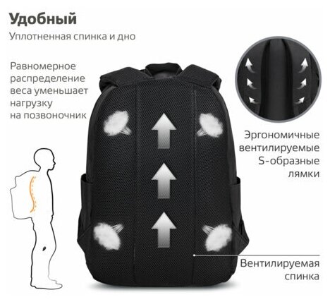 Рюкзак BRAUBERG ENERGETIC универсальный, эргономичный, "Mask", черный, 43х30х16 см, 270797 информация:
